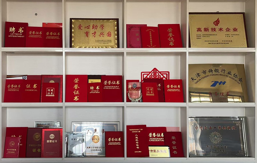 公司現為天津市鍛造行業協會常務理事單位,曾榮獲2019年度天津市寧河區總工會“五一”勞動獎狀,2022年度天津市寧河區總工會“工人先鋒號”等榮譽稱號。